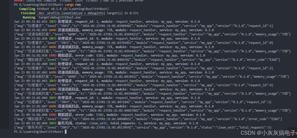 {"msg":"模拟错误","level":"ERRO","ts":"2026-01-23T01:31:02.040559Z","module":"request_handler","service":"my_app","version":"0.1.0","error_code":"E102"}