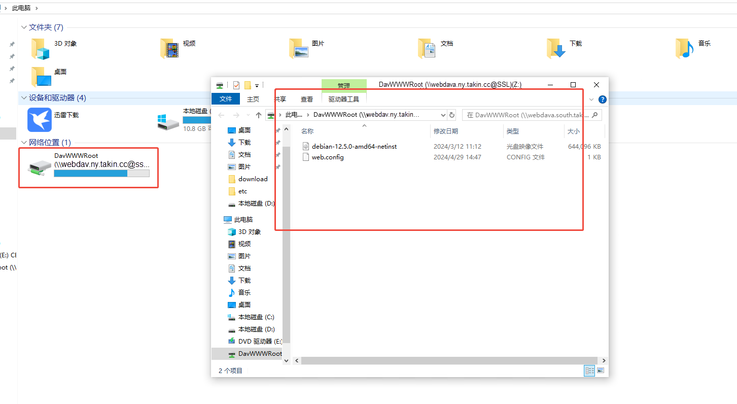 - 公网访问地址:选择 webdav 域名,如 webdava.ny.takin.cc