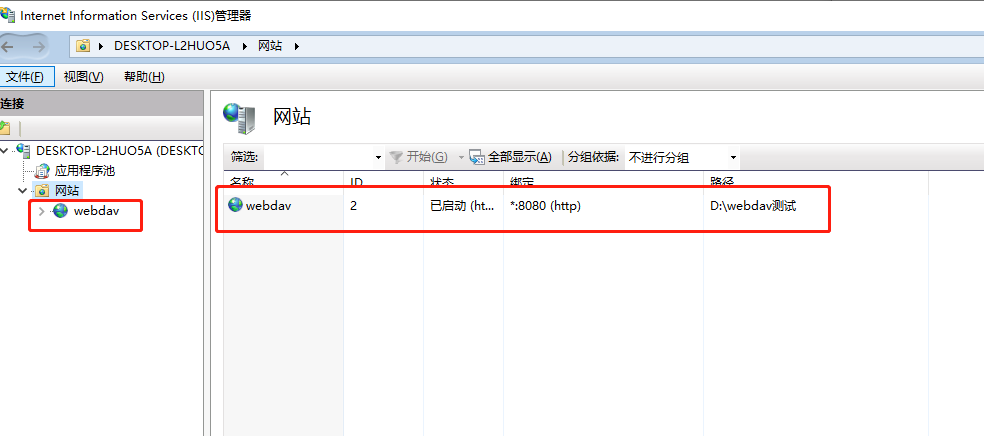- 在网站主界面下,可查看创建好的 WebDAV 网站。