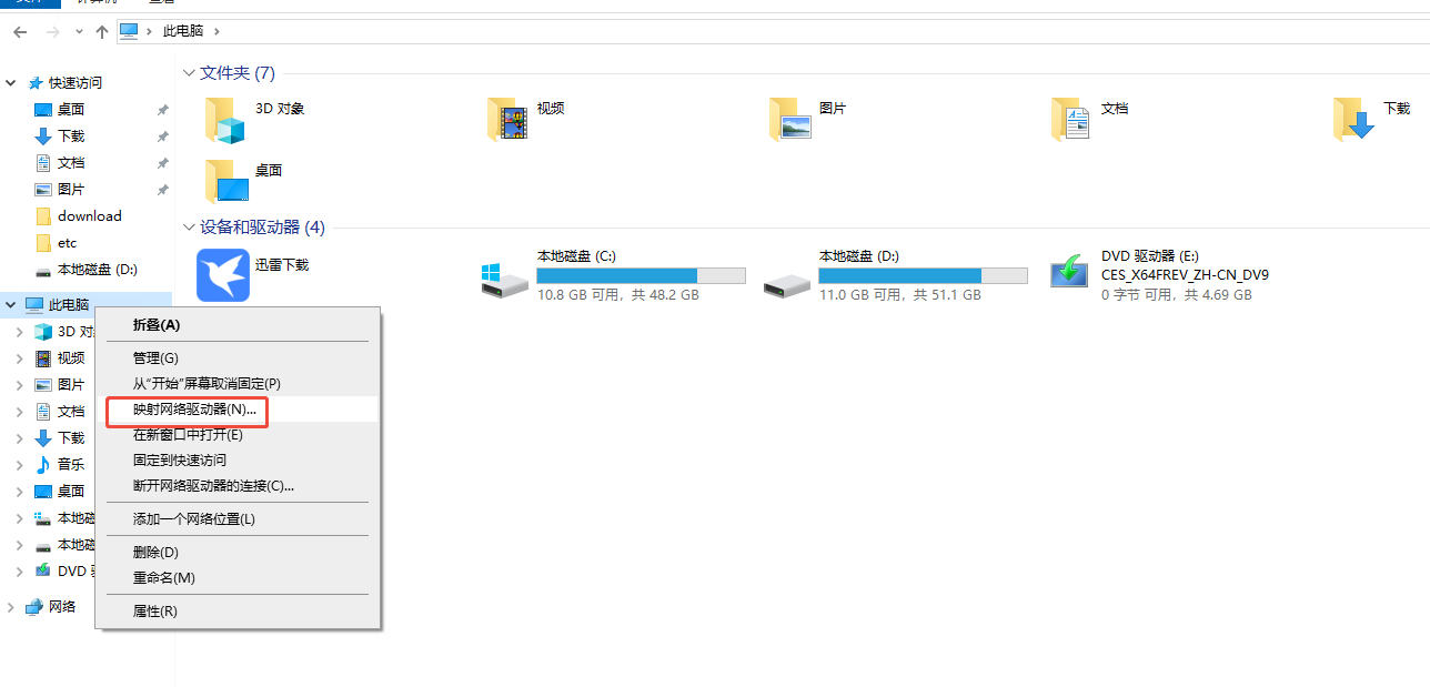 - 通过 "映射网络驱动器" 的方式将 webdav 挂载到远程电脑本地 右键点击 "此电脑", 然后点击 "映射网络驱动器"