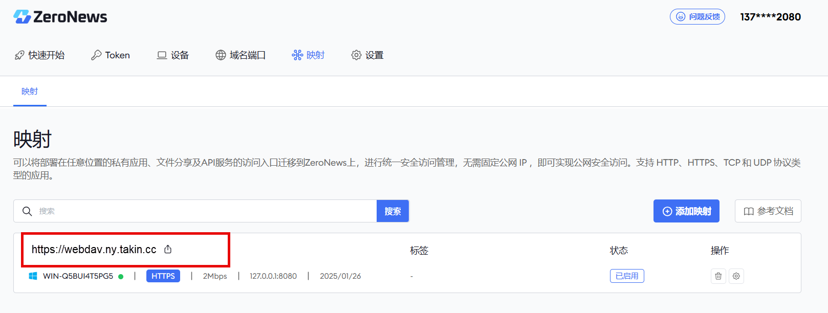 接入来,在本地运行 zeronews windows 客户端,来映射 webdav 网站,已实现公网访问