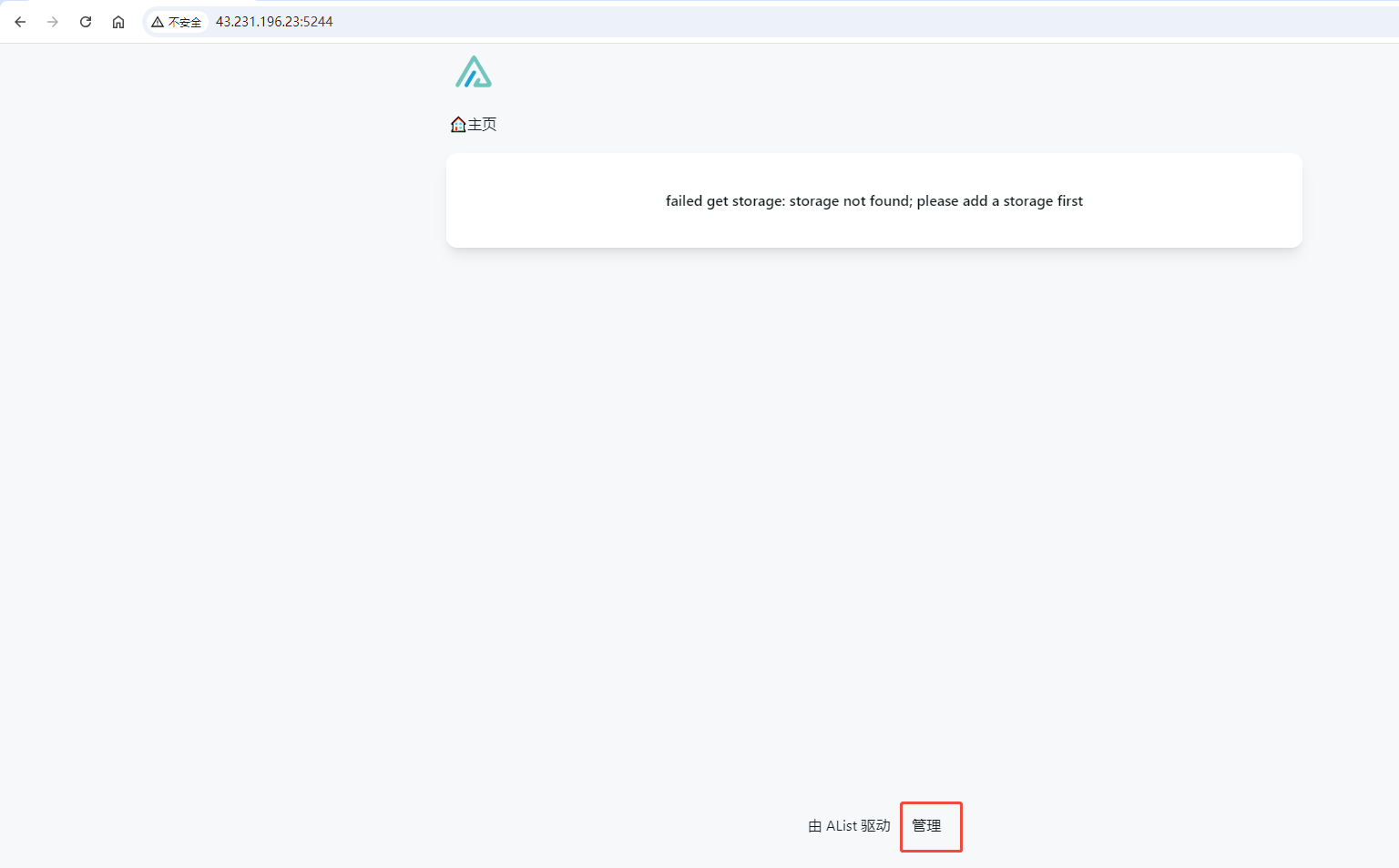 第一次登录,是没有存储盘的,点击页面下方的 "管理",添加存储盘