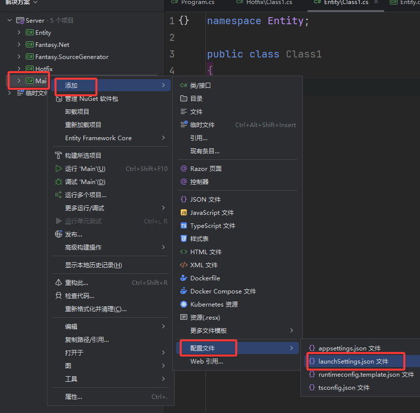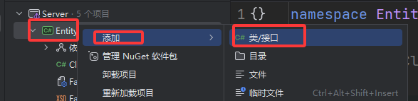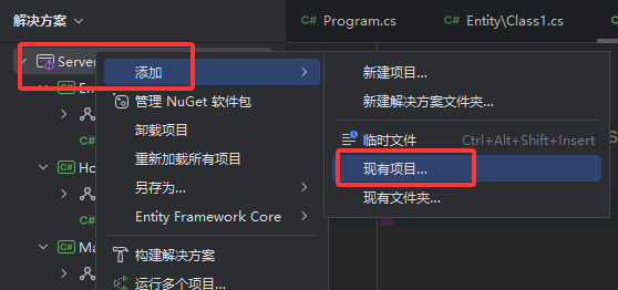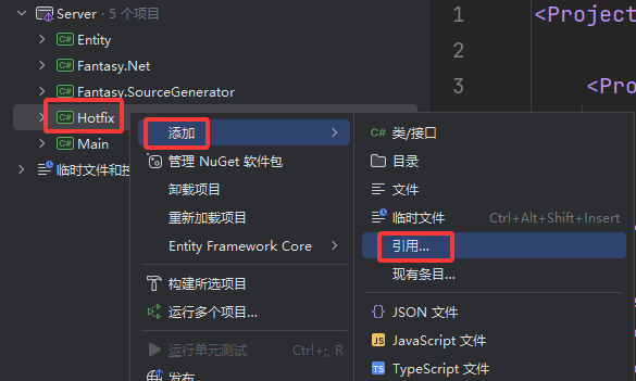 然后创建两个类库 分别是Entity 和Hotfix