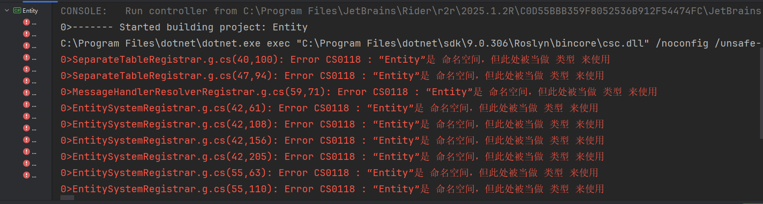 如果有下面这个报错就是 Entity下面的Class1没有删除