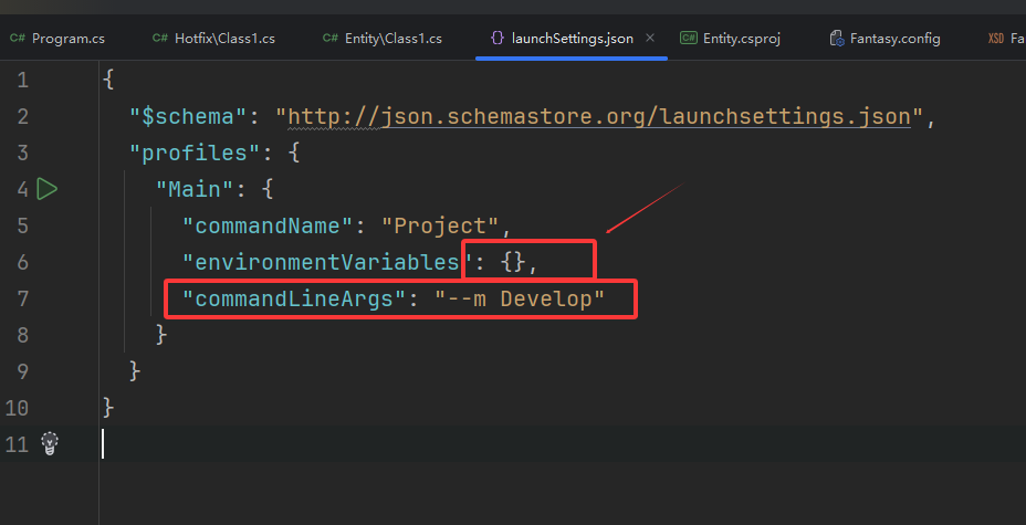 "commandLineArgs": "--m Develop"