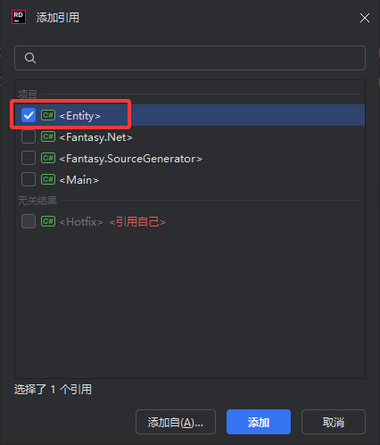 接下来我们给Entity 添加引用