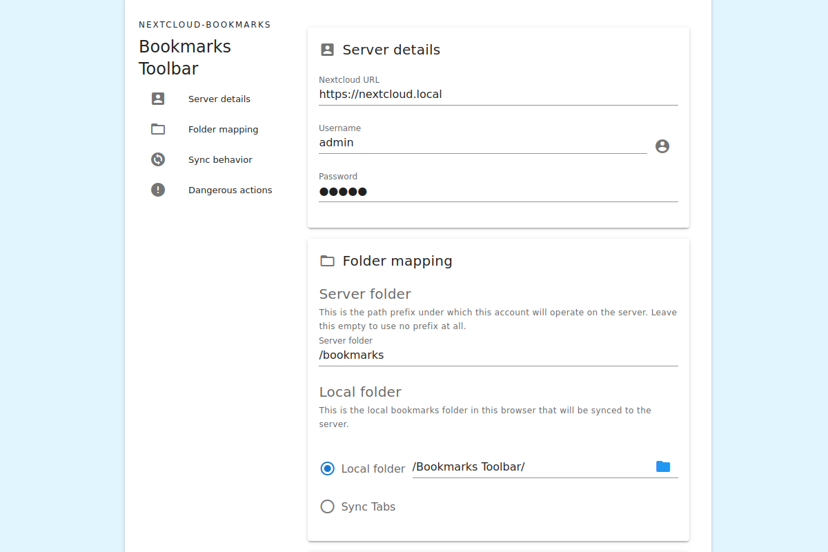 这些配置确保您的书签数据能够安全同步到私有服务器。