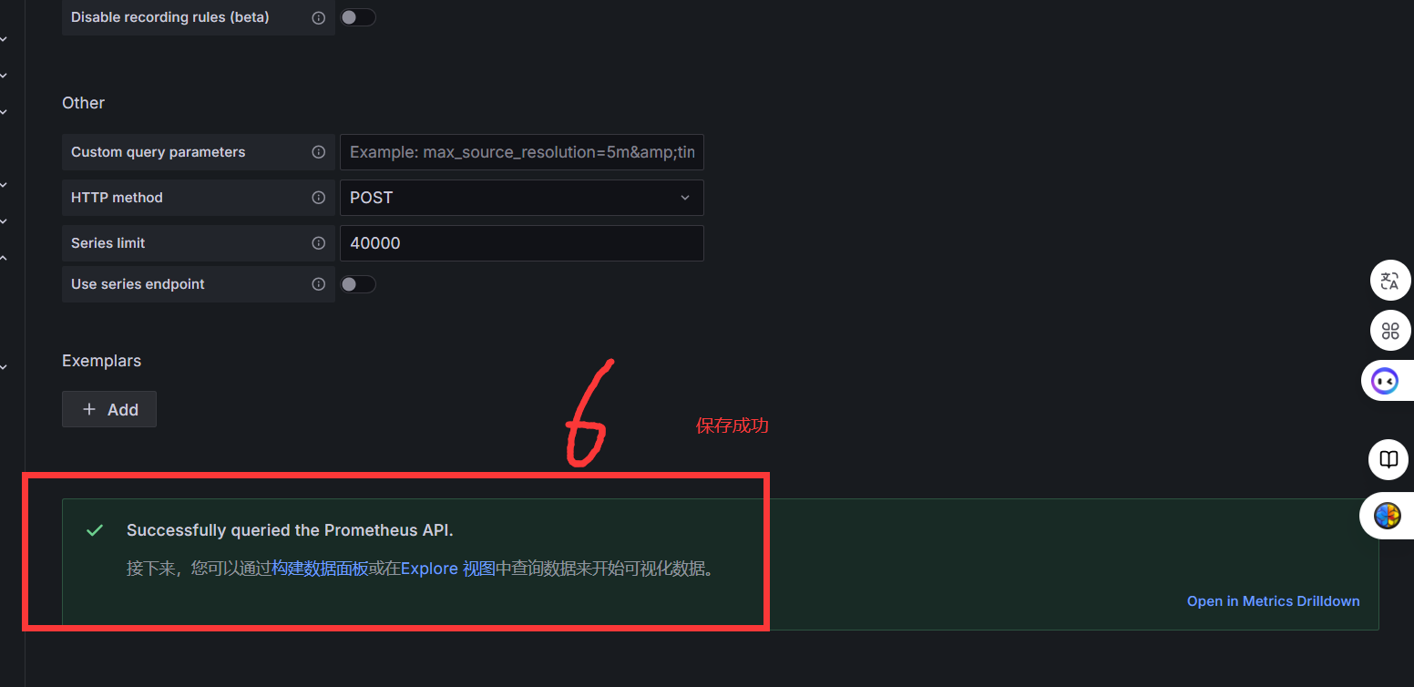 6.1.2在URL字段填写Prometheus的访问地址(如http://192.168.1.100:9090)