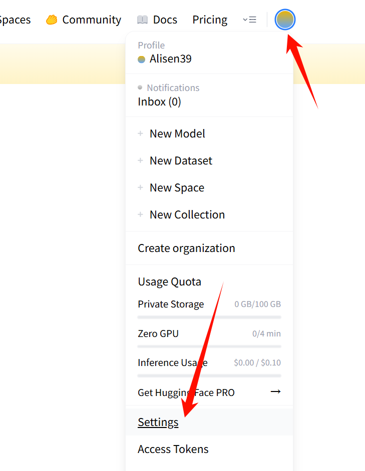 首先点击你右上角的头像,在下拉菜单中选择 “Settings”