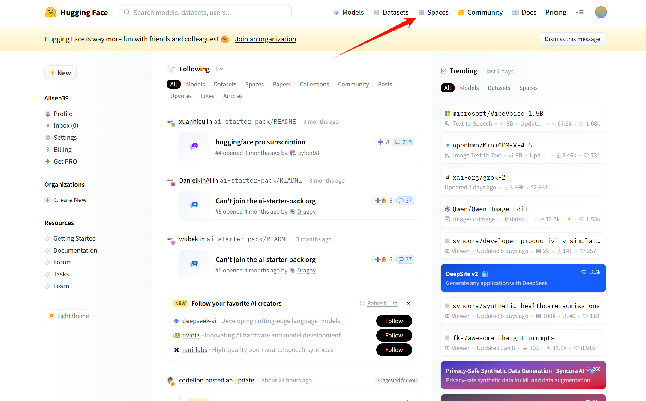 为了推动 AI 社区建设,他们提供了 Space 来让任何人都可以部署自己的大模型服务