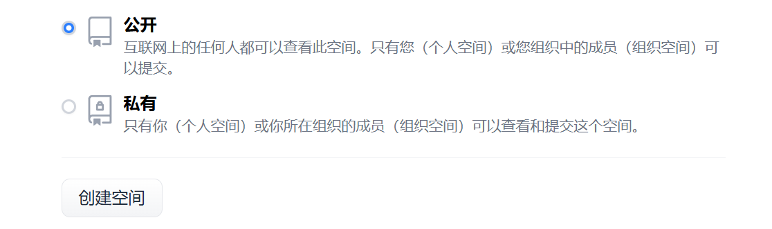 创建页面首先填写你的Space Name。 简介和License 可以不用管