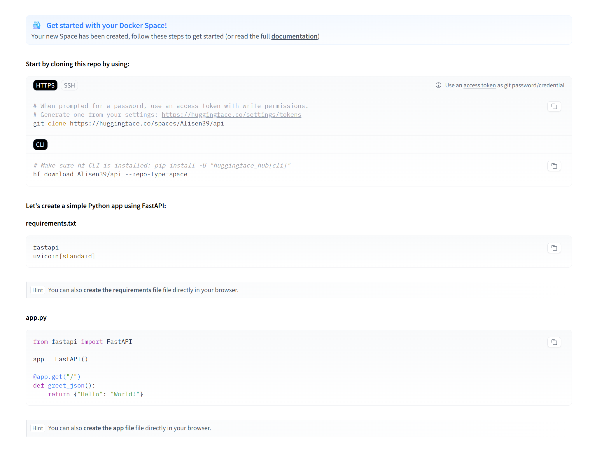 如果你的space内容和我一样,也是一个python 的 FastAPI 服务,那么 {用户名}-{space name}.hf.space 就是你服务的直接路径。