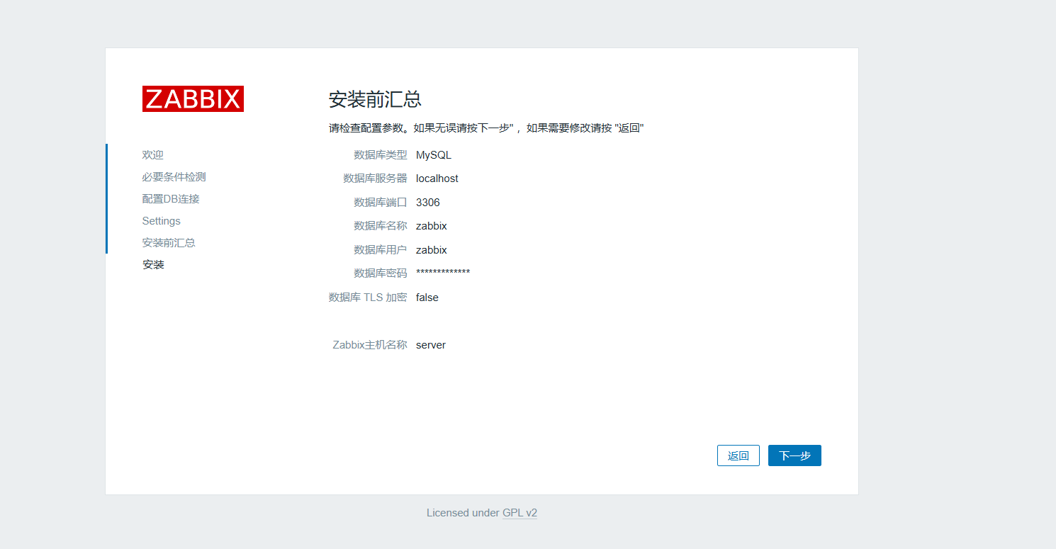 访问 Zabbix 前端 在浏览器中输入服务器 IP 地址:http://服务器IP地址 安装向导第一步:检查预安装条件 确保所有项目均显示为 "OK",如有错误需根据提示解决(通常是 PHP 扩展缺失) 配置数据库连接 数据库类型:MySQL 数据库主机:localhost 数据库端口:3306 数据库名称:zabbix 数据库用户:zabbix 数据库密码:your_password(之前设置的密码) 设置 Zabbix 服务器详情 主机名:UOS-Server-1050e(需与 Agent 配置一致) 端口:10051 名称:可自定义(如 "UOS 监控服务器") 确认配置摘要 检查所有配置无误后点击 "Next step" 完成安装 看到 "Congratulations! You have successfully installed Zabbix frontend" 表示安装成功 登录 Zabbix 用户名:Admin 密码:zabbix(首次登录后建议立即修改)