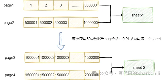 //如果% 2 == 0,则说明一个sheet写入了50*2即100w的数据,需要创建新的sheet进行写入