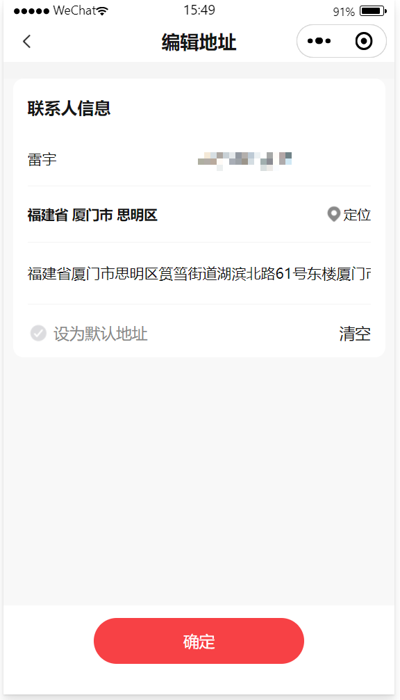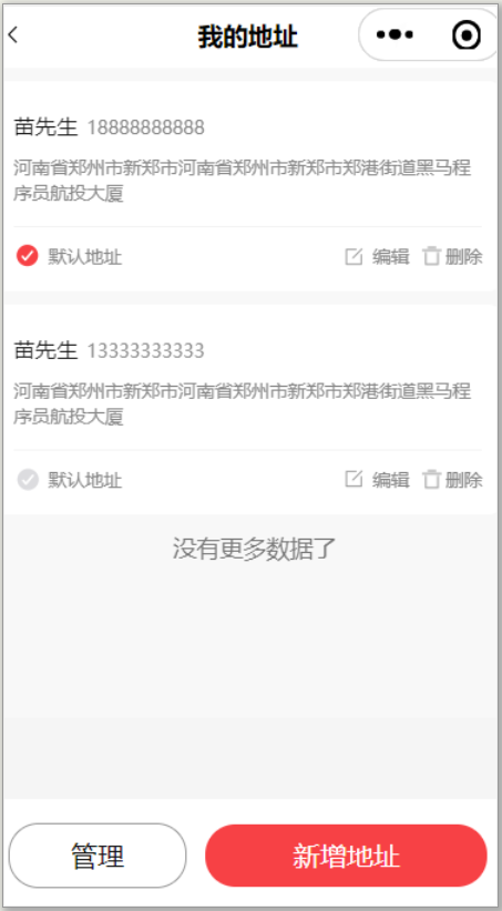 注意:默认地址一个用户只能有一个,如果设置新地址为默认地址,则需要取消旧的默认地址