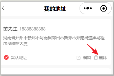 进入我的地址页面,点击“删除”对地址簿进行删除,批量删除也走此接口