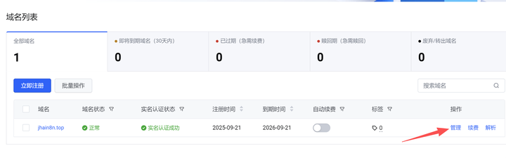 (1)点击【管理】,到【域名列表】