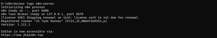 更新 n8n 容器,将 WEBHOOK_URL 改为 new.jhain8n.top,具体执行如下——