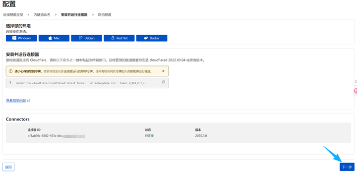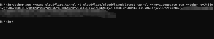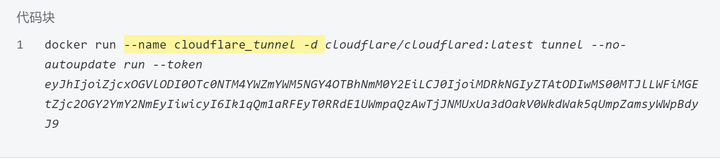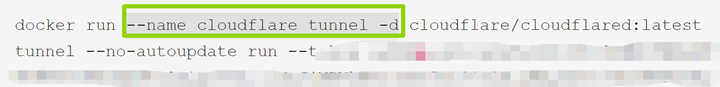 docker run --name cloudflare_tunnel -d cloudflare/cloudflared:latest tunnel --no-autoupdate run --token xxxx(xxx是自己复制出来那串token码)