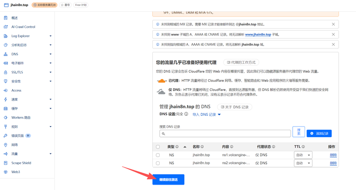 回到刚才Cloudflare界面,点【继续】