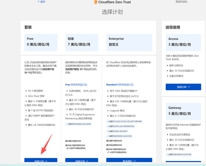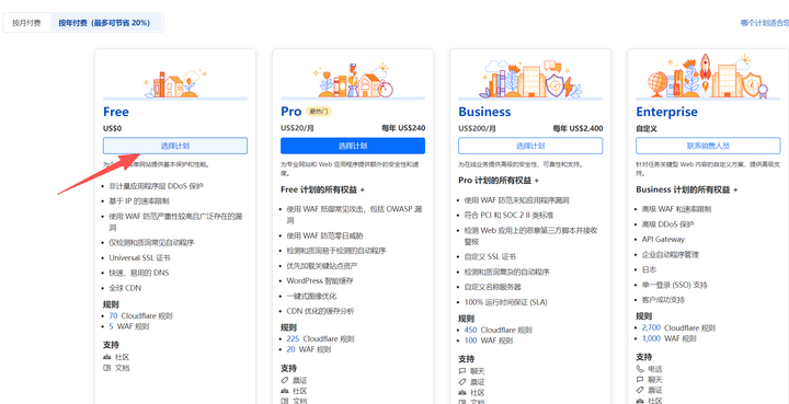 (4)点击Free选择计划