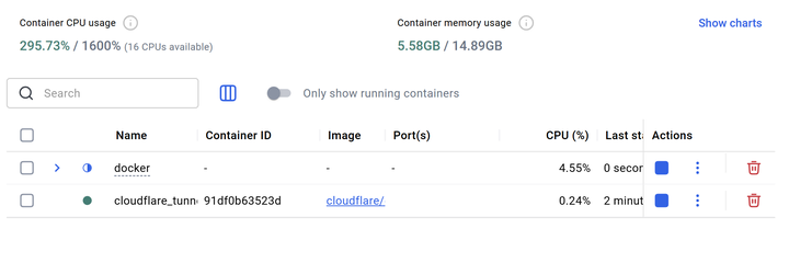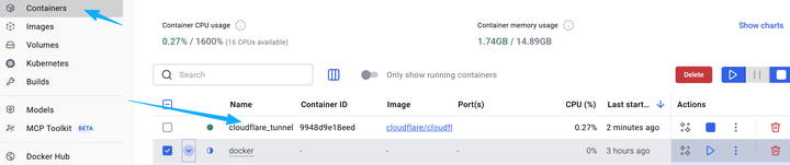 成功后,在docker容器能正常显示【cloudflare_tunnel】