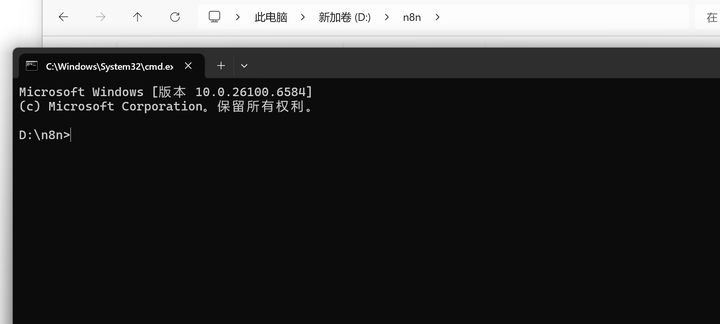 在n8n所在路径,输入【cmd】让docker停止并删除旧n8n容器(数据不会丢失,因挂载n8n_data数据卷),指令——