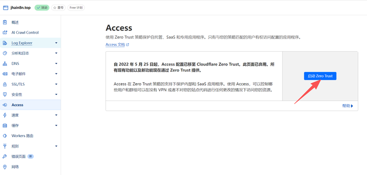 (1)点击【Access】-【启动Zero Trust 】