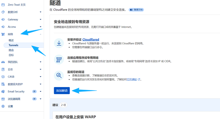 12、Cloudflare,左边【网络】-【Tunnels】,点击【下一步】,设置公共机名