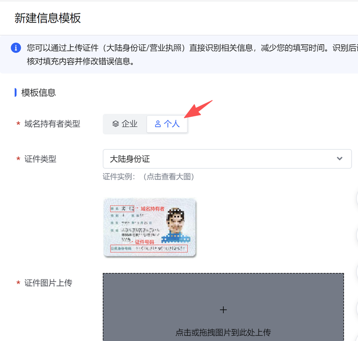 (9)填写个人信息,并点击下一步,姓名要用英文,最后选择【个人】