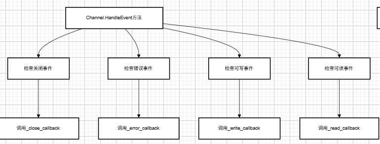 Channel bind对应的read write error等事件回调的对应函数调用,epoll_wait事件由start进行处理,延迟执行和跨线程任务 放入任务队列等待执行,并由event_fd用于唤醒epoll_wait避免阻塞,防止队列任务无法执行