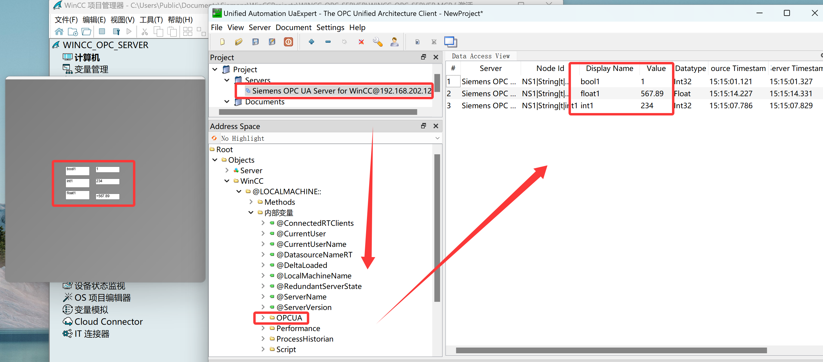 - 截图使用的操作系统为Windows11专业版系统,软件版本为WinCC 8.1、UaExpert 1.7.1