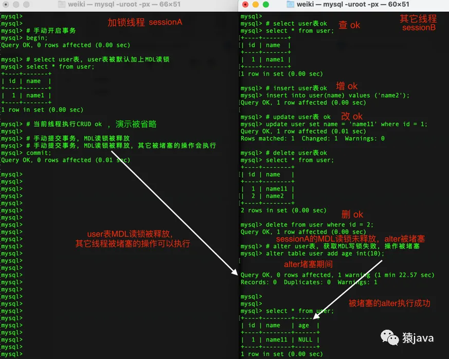 alter user 表,获取 MDL 写锁失败,操作被堵塞 | |
