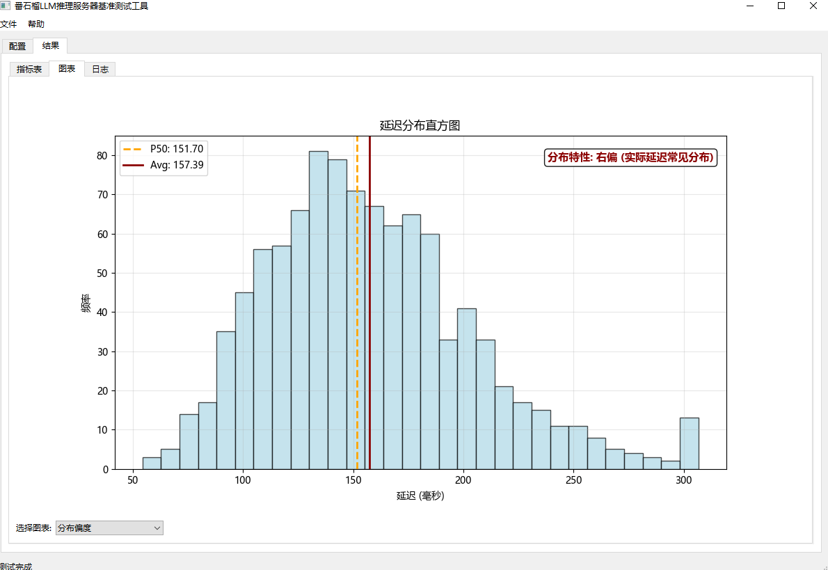 分布偏度图:左偏表示大多数请求延迟较低(性能良好),右偏表示存在高延迟异常(需优化),对称表示延迟分布均匀