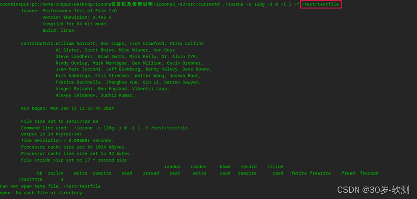 8、开始测试:sudo ./iozone -s 128g -i 0 -i 1 -f /etc/test/testfile