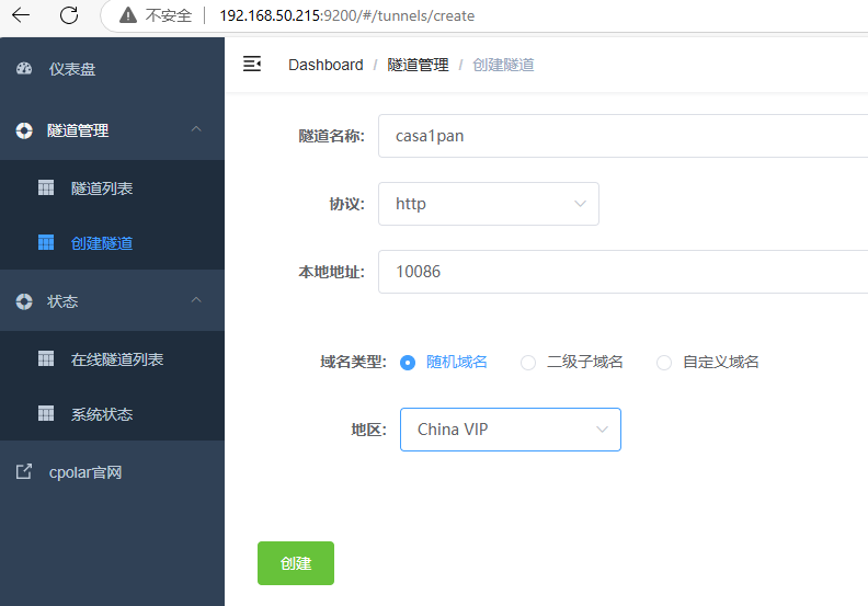 输入账号密码登录cpolar web UI管理界面后,点击左侧仪表盘的隧道管理——创建隧道: