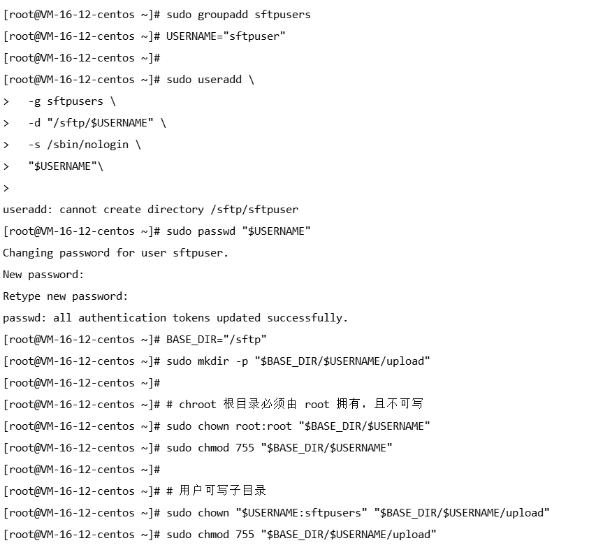 sudo chown "$USERNAME:sftpusers" "$BASE_DIR/$USERNAME/upload"