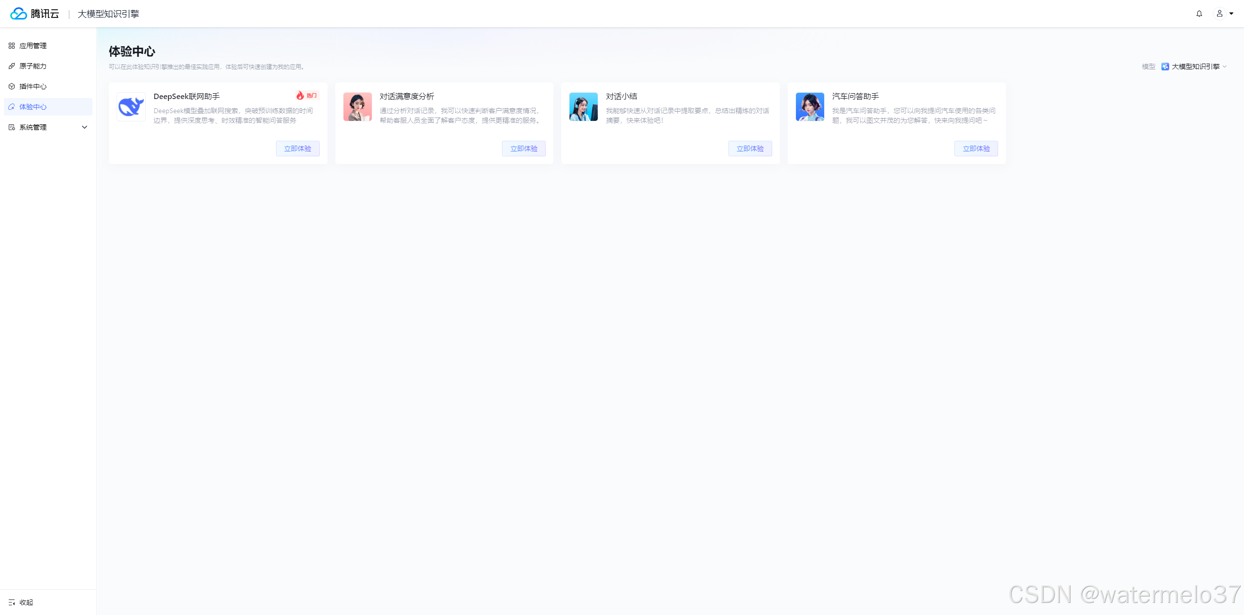 点击大模型知识引擎,在新页面点击体验中心就能看到“DeepSeek联网助手”,点击即可使用。