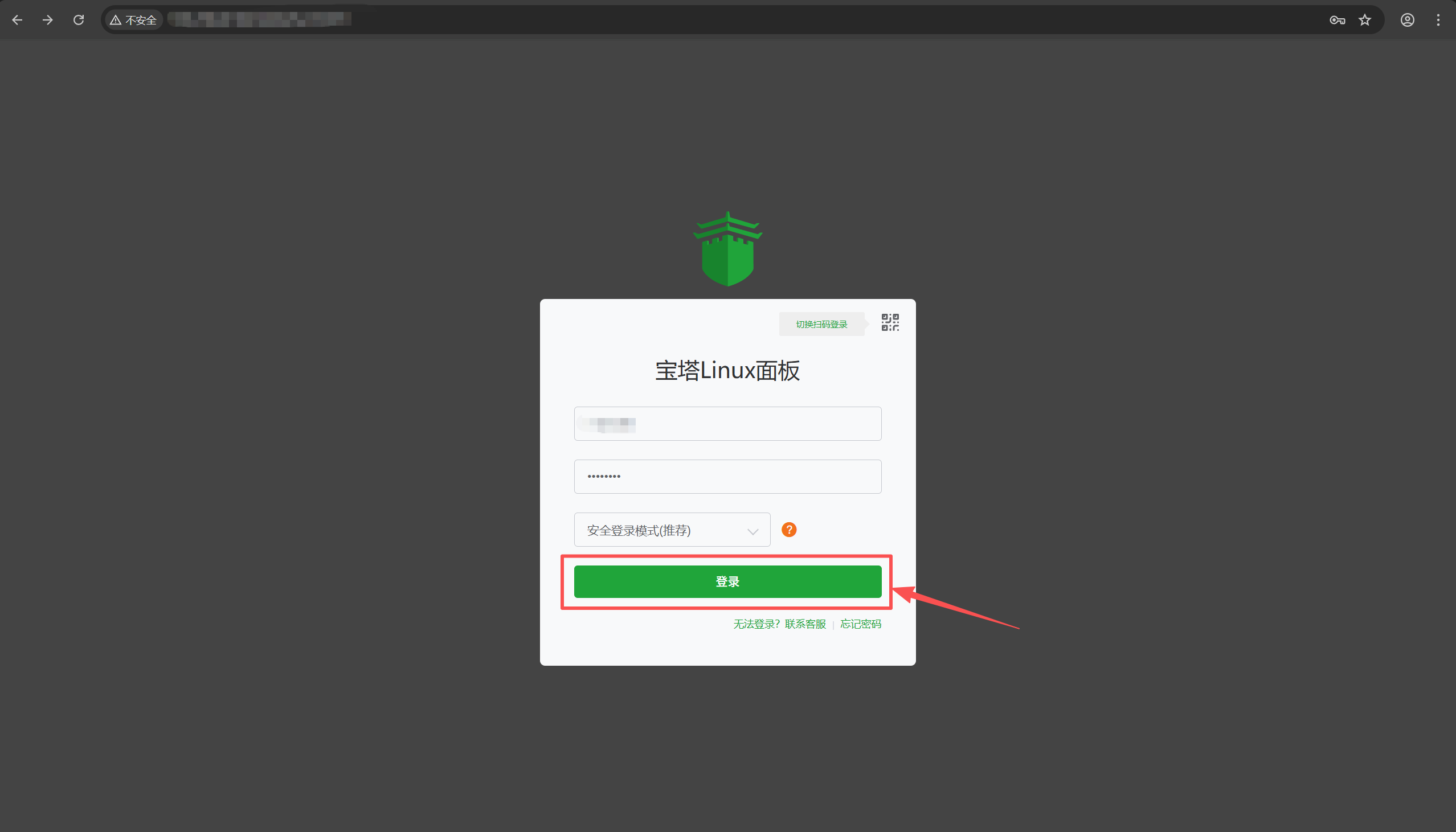 安装后提示“恭喜,宝塔面板安装成功!”,请你妥善保管这些内容后打开面板地址。