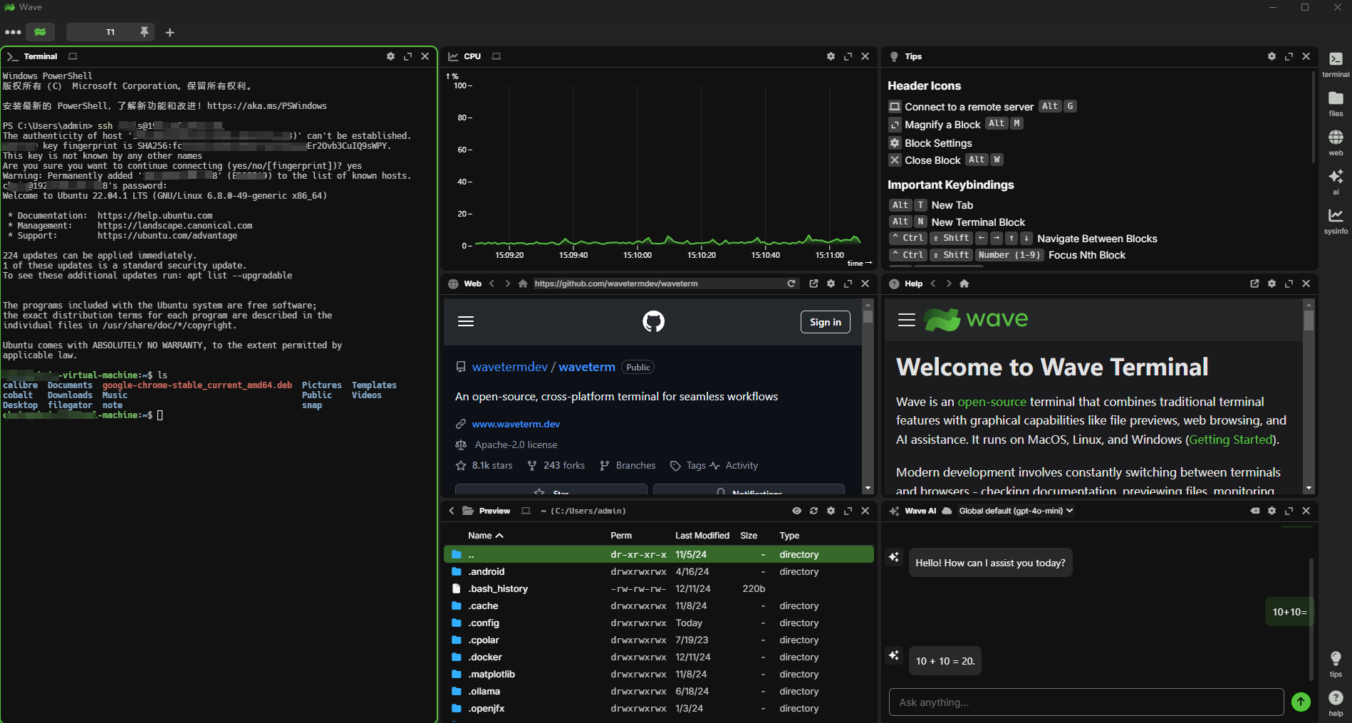 内置AI与浏览器的开源终端Wave Terminal安装与远程连接内网服务器教程