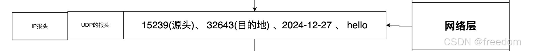 转换为数据报:15239(源头)、 32643(目的地) 、2024-12-27 、hello。