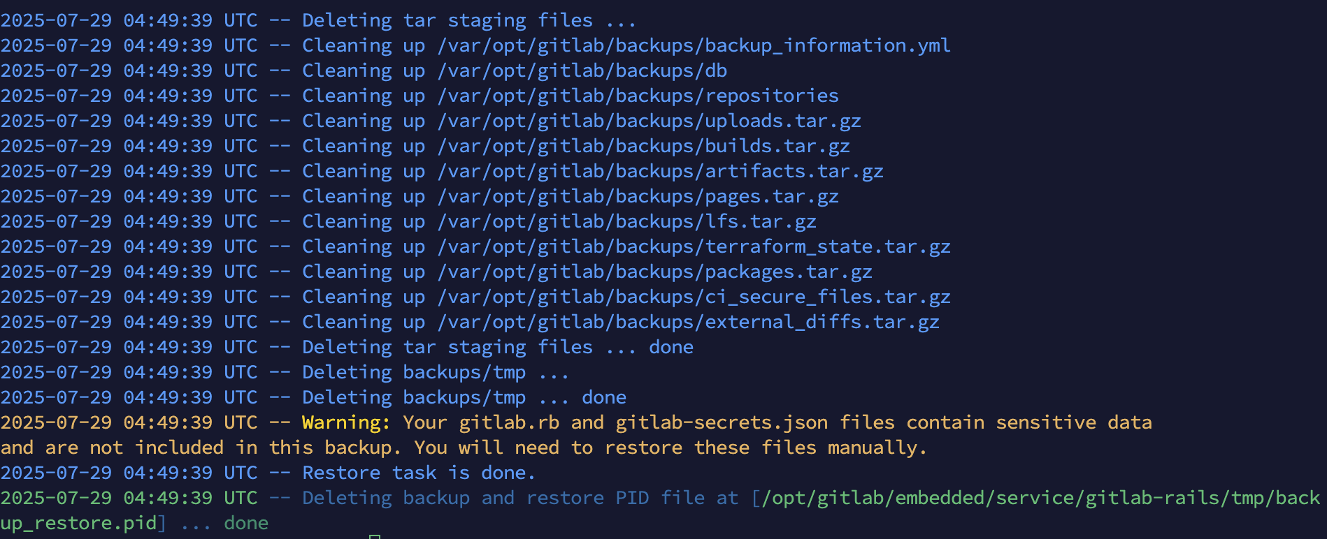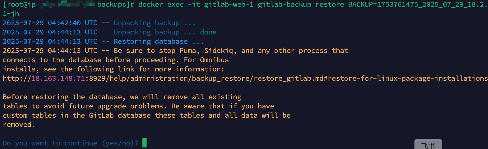 注意:gitlab会自动补全文件后缀名_gitlab_backup.tar,因此文件原名是1753761475_2025_07_29_18.2.1-jh_gitlab_backup.tar,但是命令中只输入1753761475_2025_07_29_18.2.1-jh