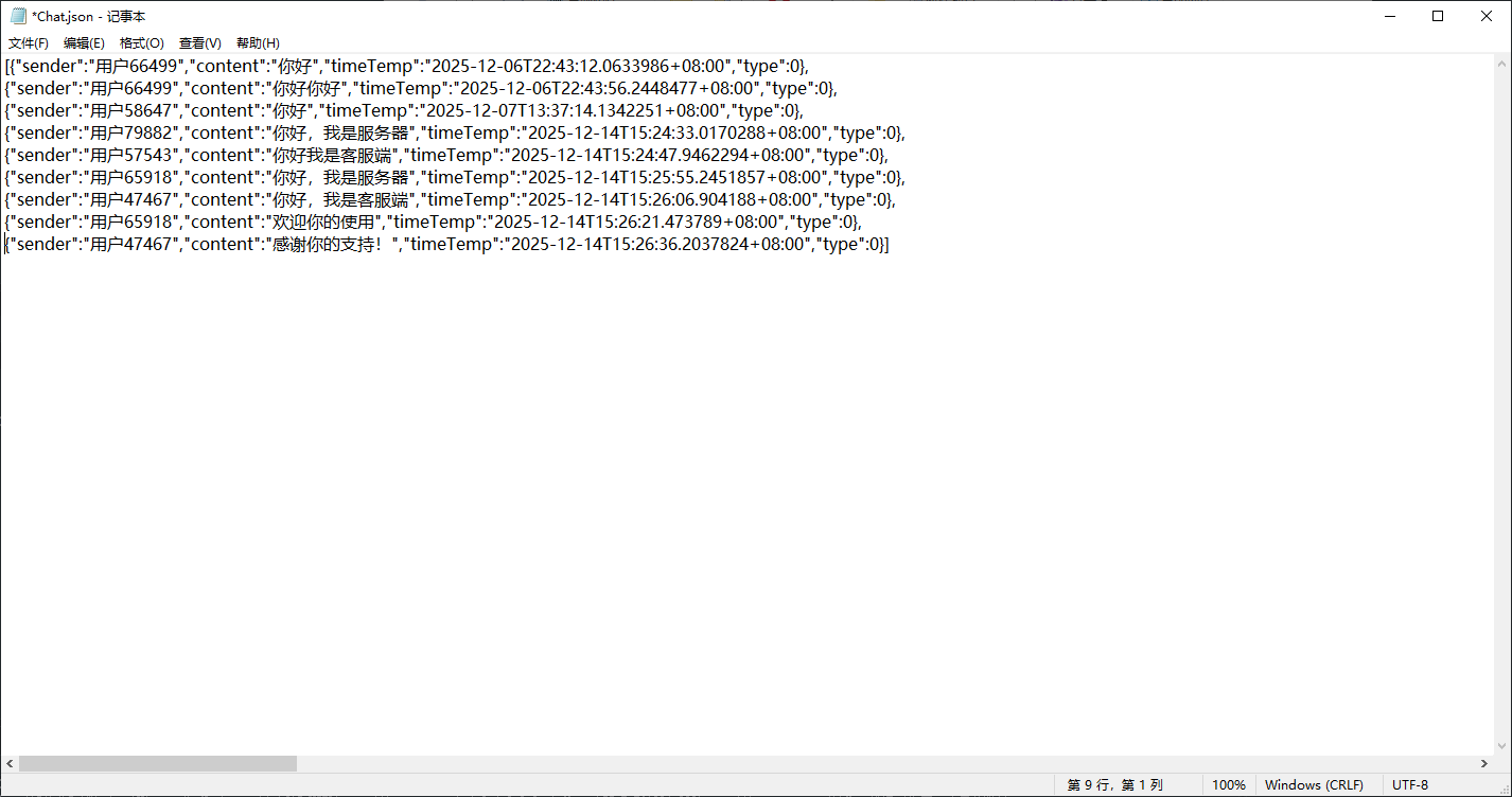 - 最后给大家看看保存的聊天记录吧(我忘记我完善过了)