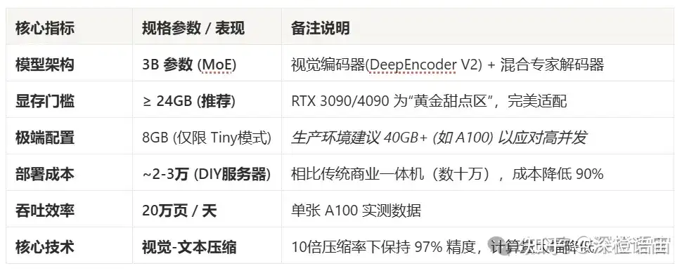 对于金融、法律等复杂文档场景,DeepSeek-OCR 2 不仅快,而且准。只要配备了入门级算力(RTX 4090 或 A10/A30),DeepSeek-OCR 2 足以支撑企业内部高并发的实时文档处理流水线,实现日常财报等复杂文本的分析。