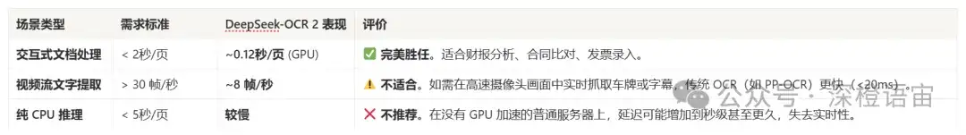 时效性上:吞吐量上表现惊人,但超低延迟不如传统的轻量级 OCR。