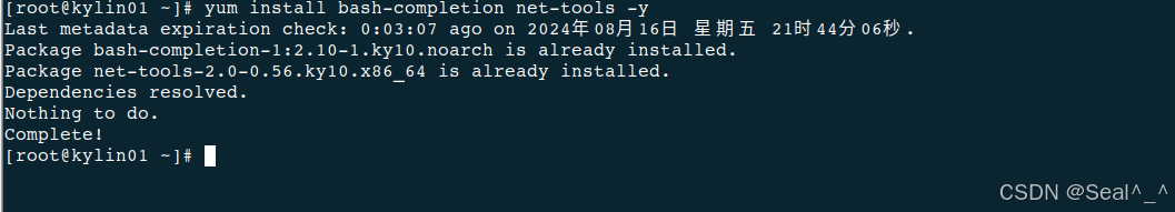 bash-completion自动补全工具、net-tools网络诊断和管理工具的集合等:yum install bash-completion net-tools -y