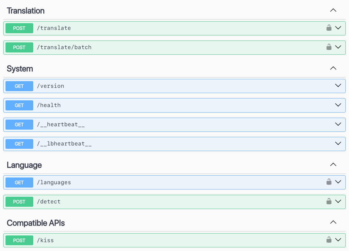 MTranServer的Swagger API文档界面,可在此测试API功能