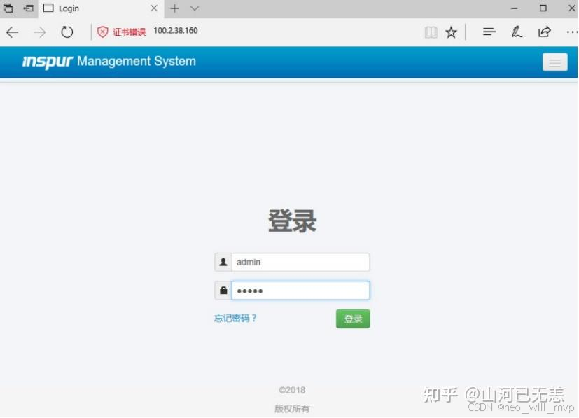 默认密码一般为 admin/admin,登录成功之后,我们就可以通过 Web 端来实现对服务器的远程控制,进行系统安装