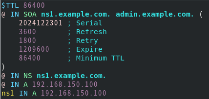 $TTL 86400 ; 默认 TTL 为 86400 秒(24小时)