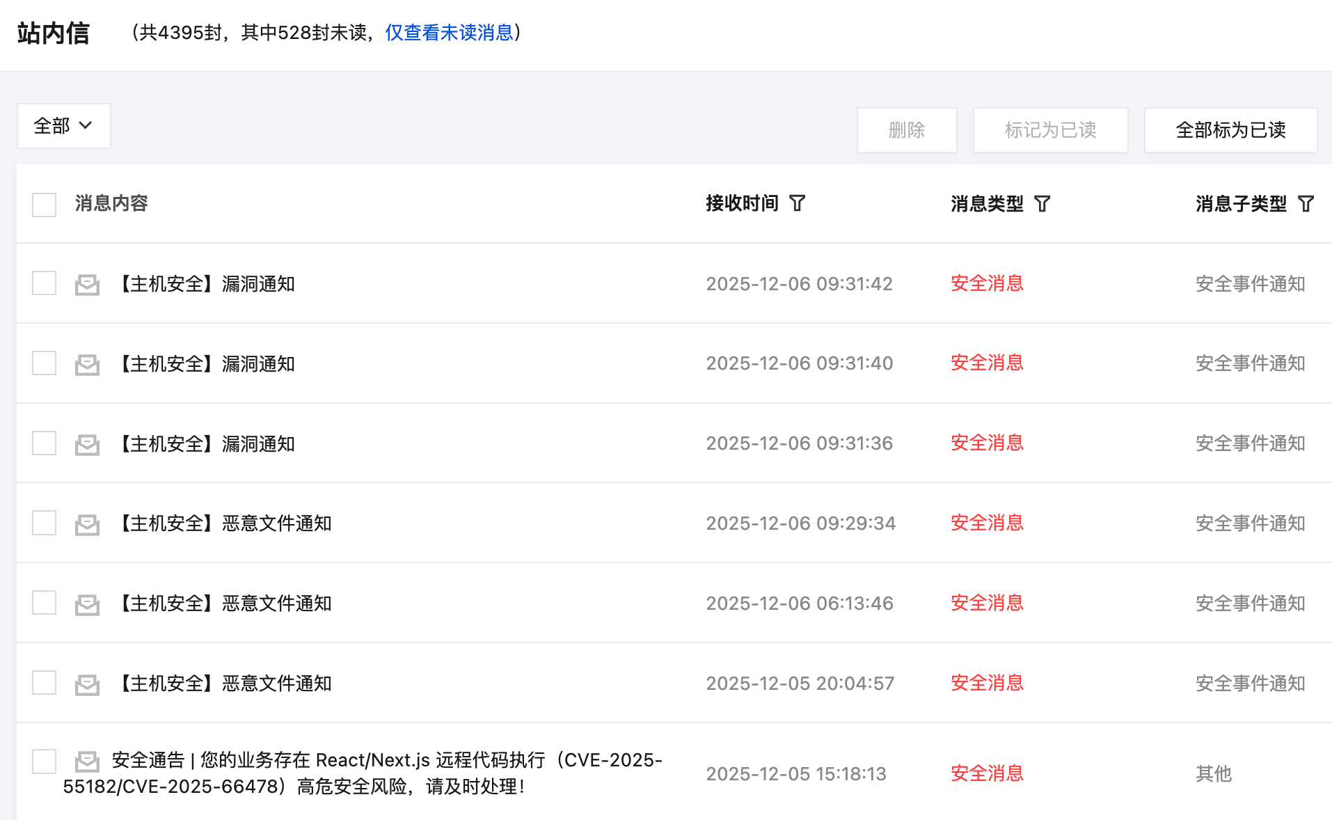 2025 年 12 月 5 日下午,腾讯云给我发来一条安全告警通知,说我的业务存在 React/Next.js 远程代码执行(CVE-2025-55182/CVE-2025-66478)高危安全风险。